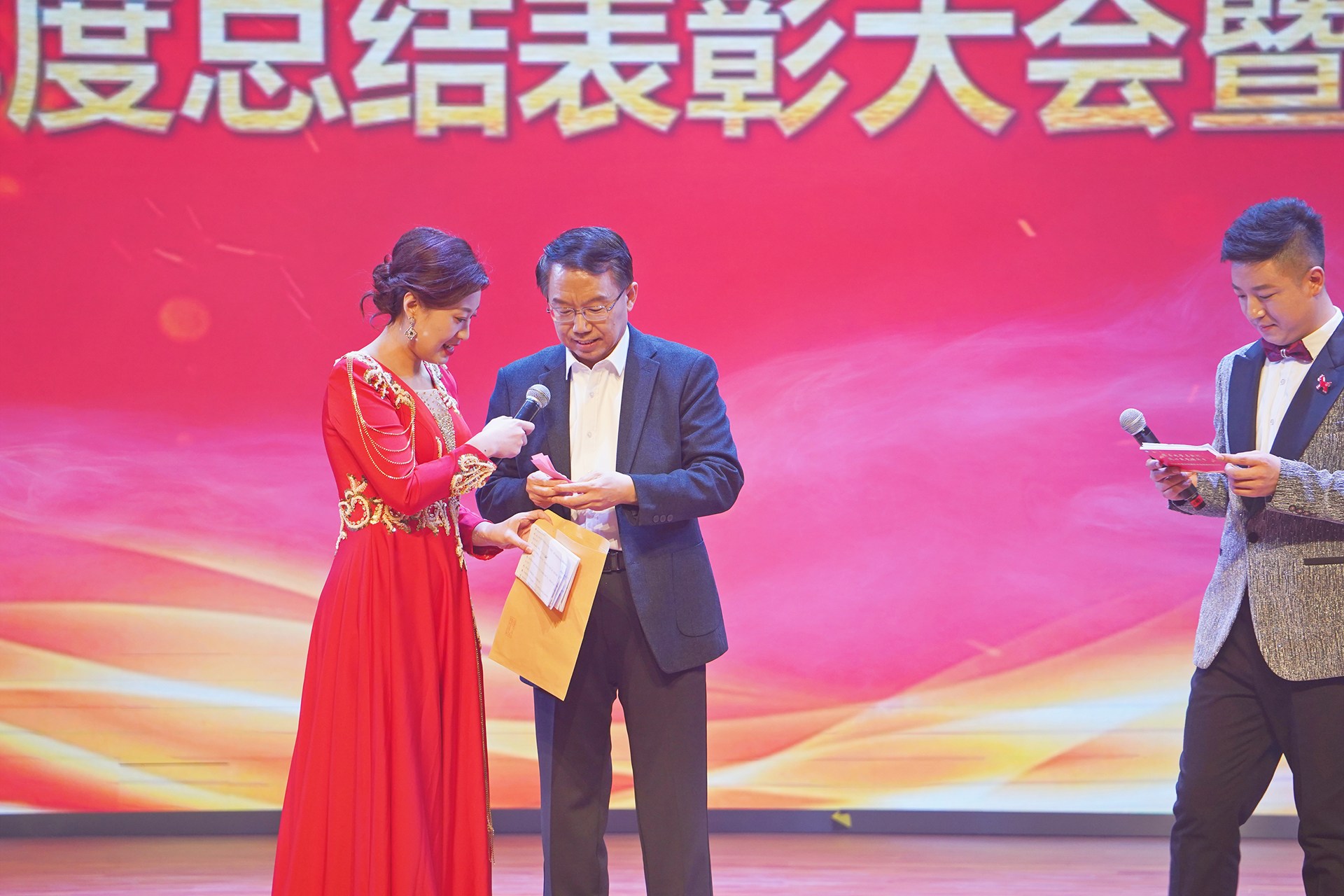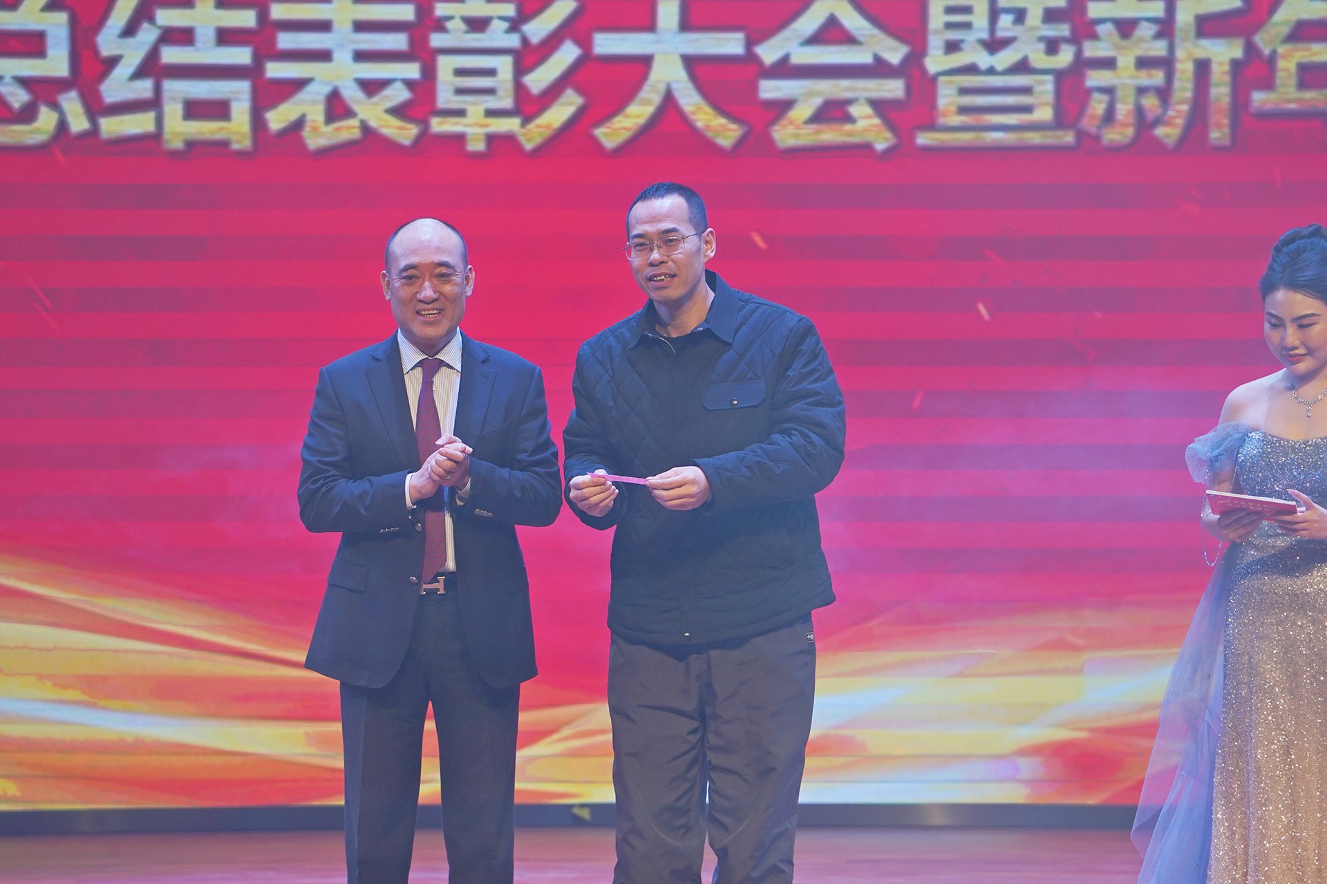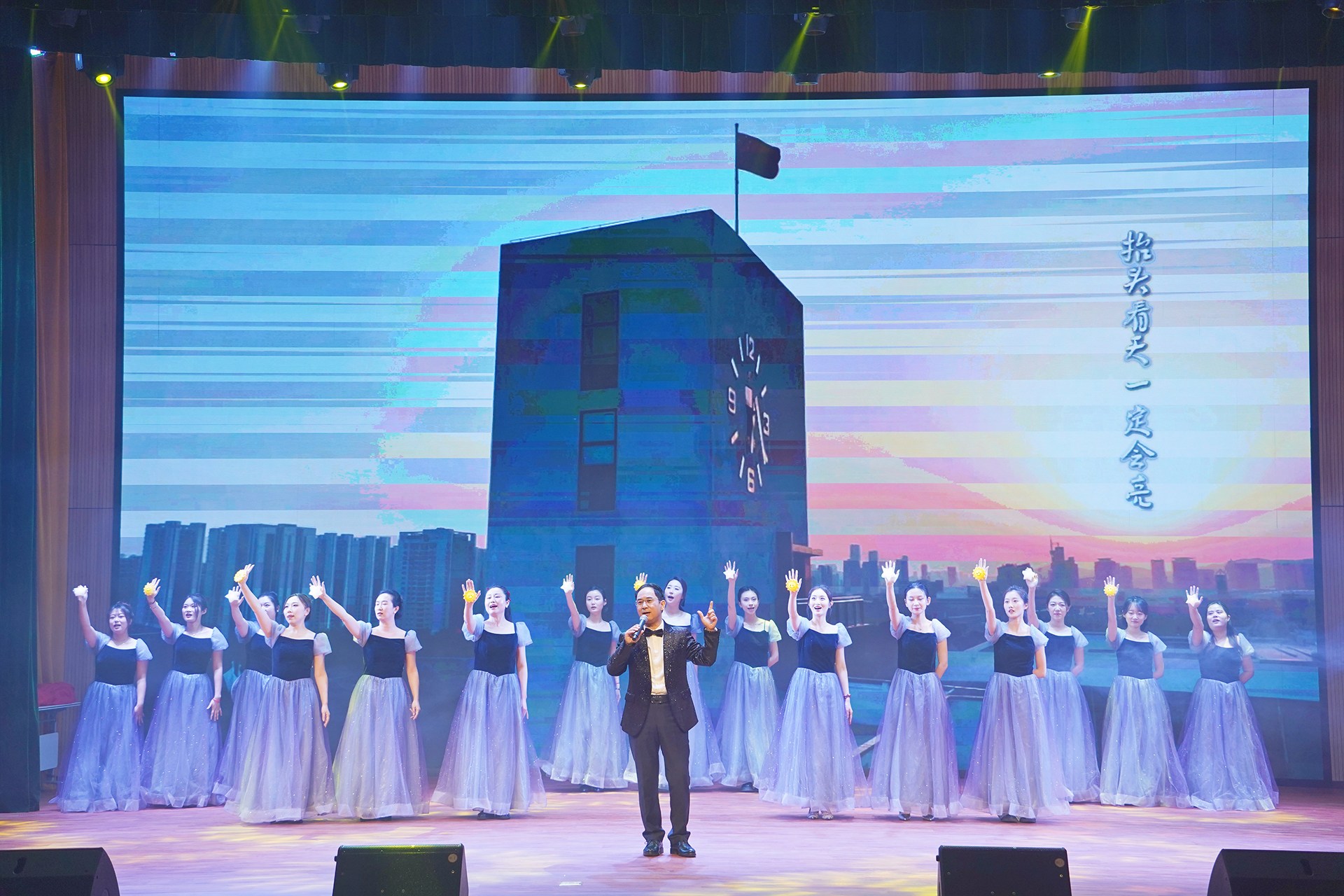 颁奖仪式后新年联欢会正式拉开序幕。节目形式丰富、内容精彩,展现了学校美育工作的丰硕成果和教职工多才多艺、积极向上的精神风貌。最后,全体人员齐声高唱《歌唱祖国》,激昂的歌声响彻全场,传递出对祖国的无限热爱与对学校未来的美好期许。