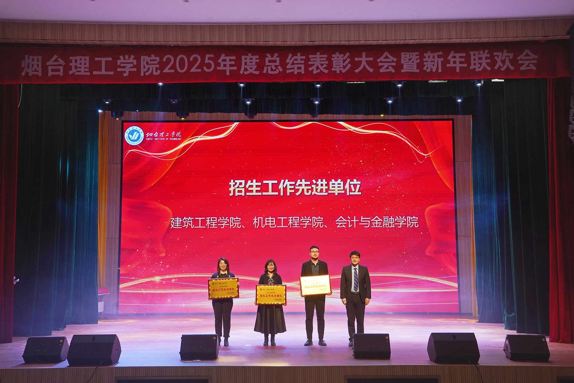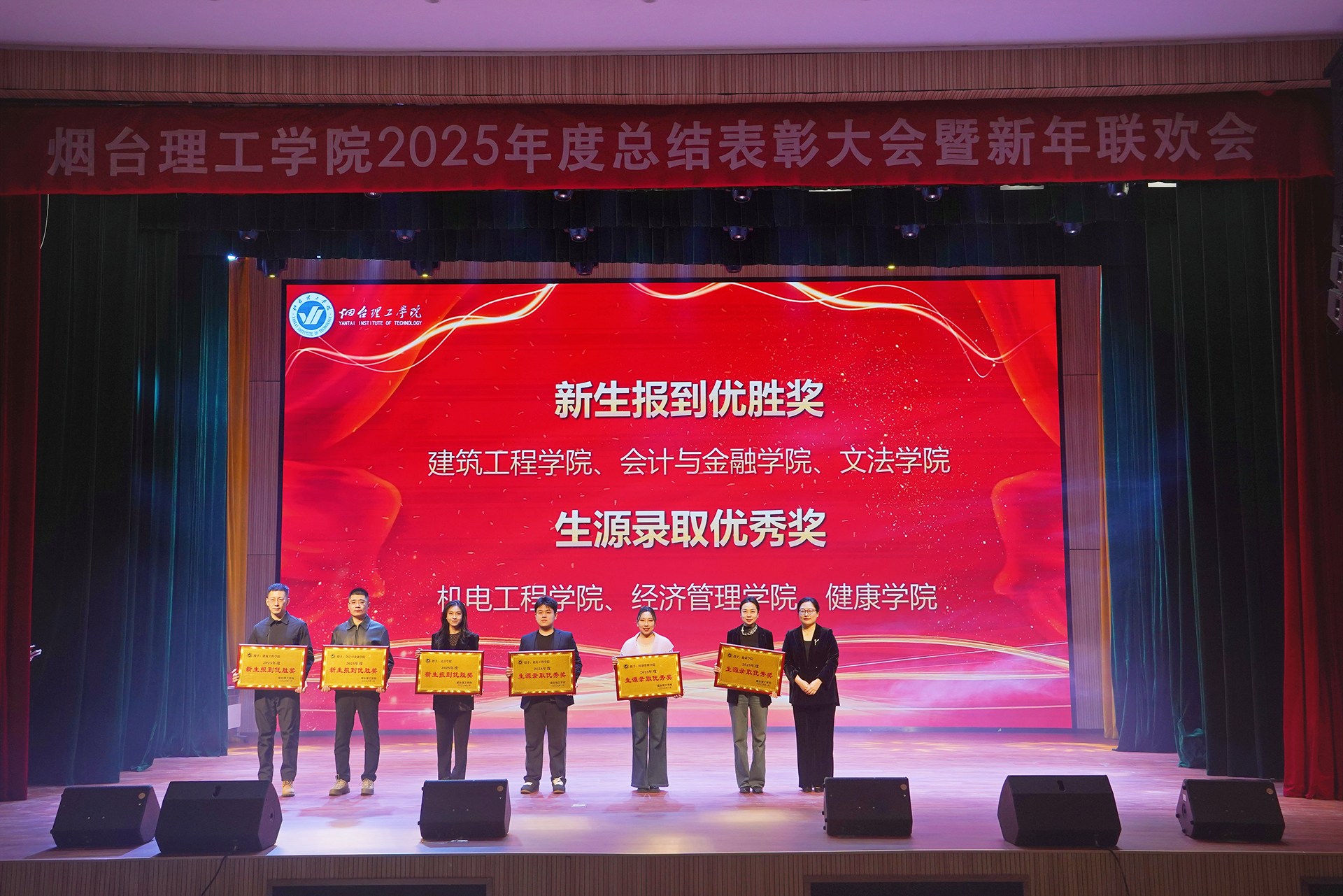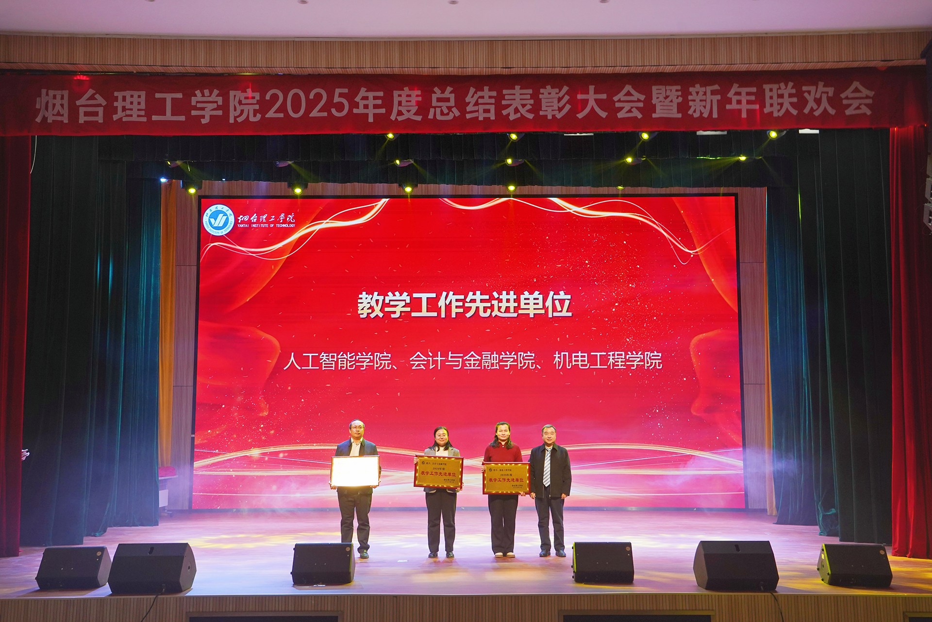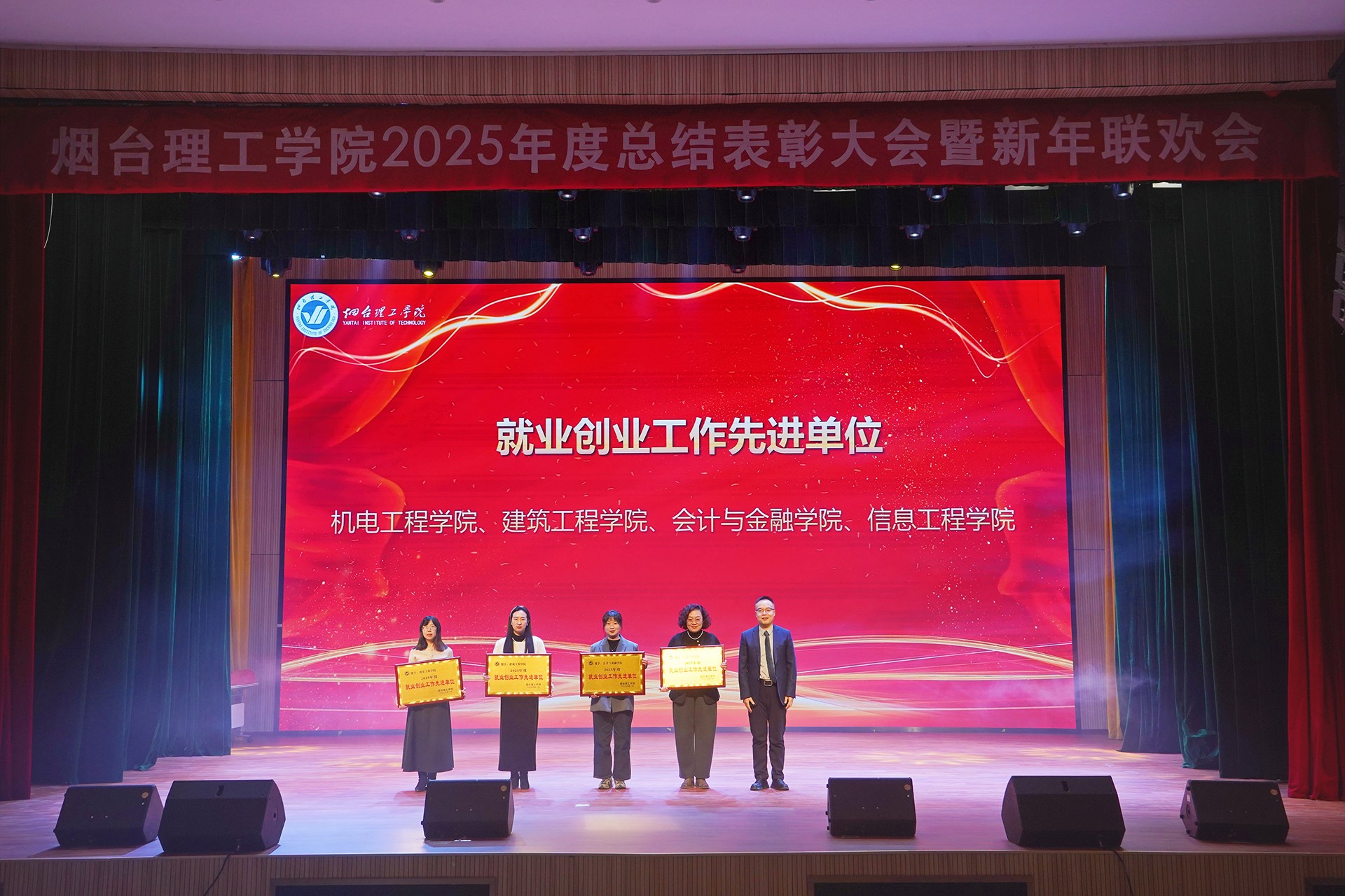 祥隆企业集团董事长、烟台理工学院董事长辛军及其他校领导会上对2025年度教育教学、科学研究、师资建设、招生就业、目标管理等方面表现突出的先进单位进行了表彰。