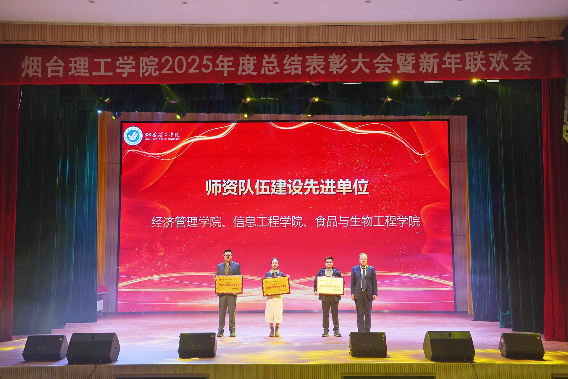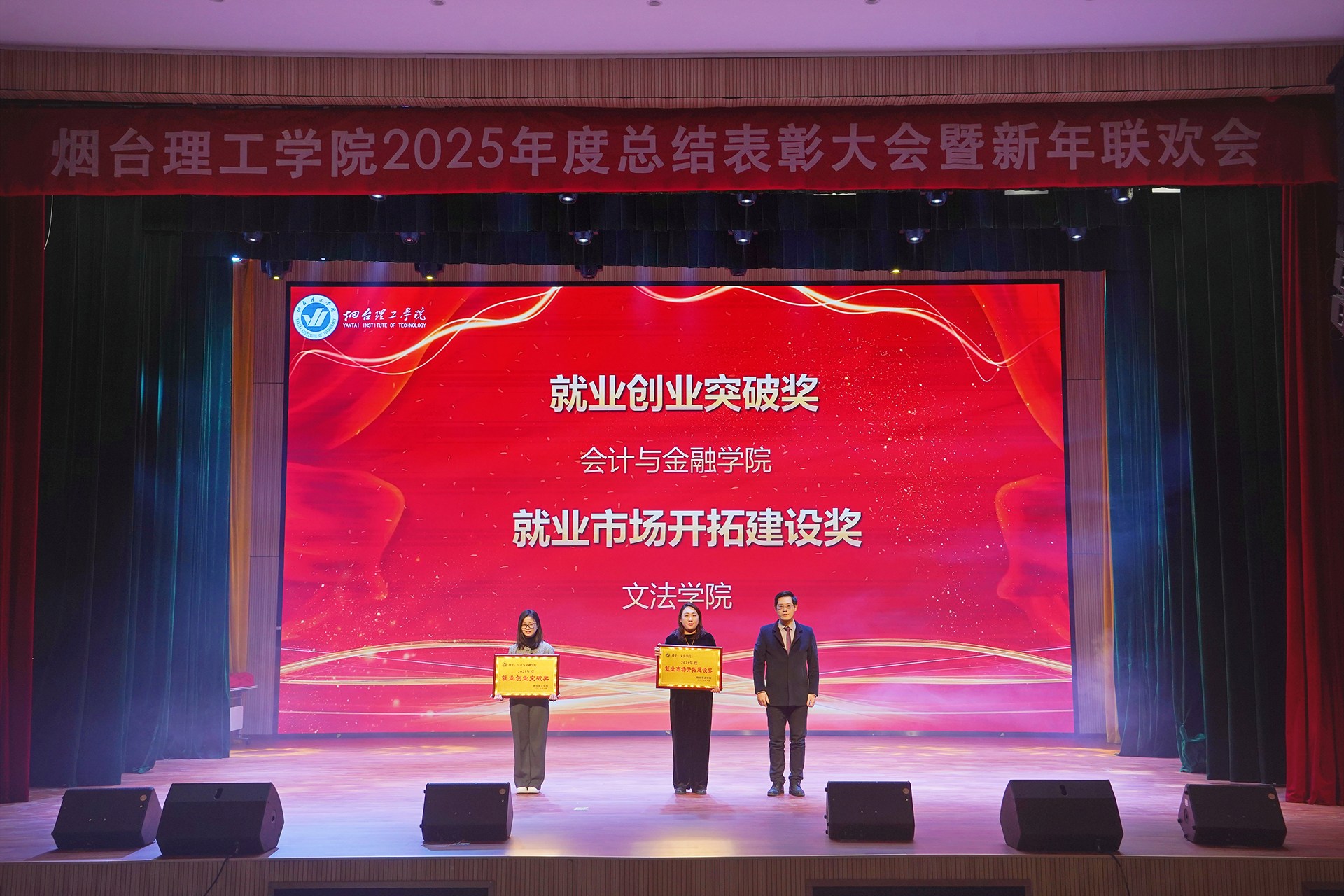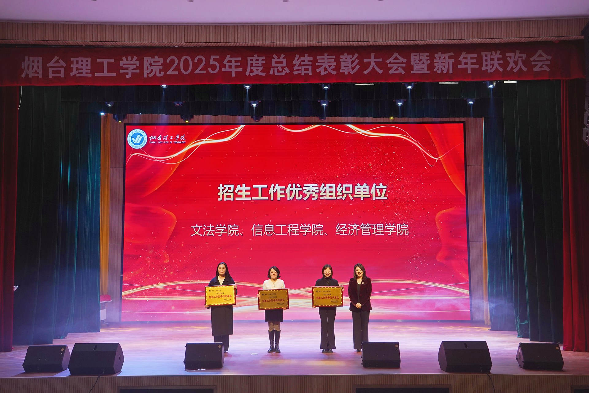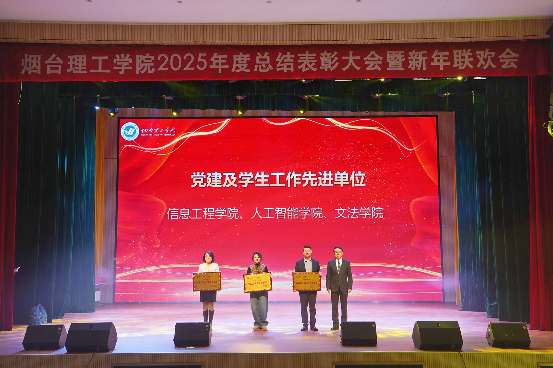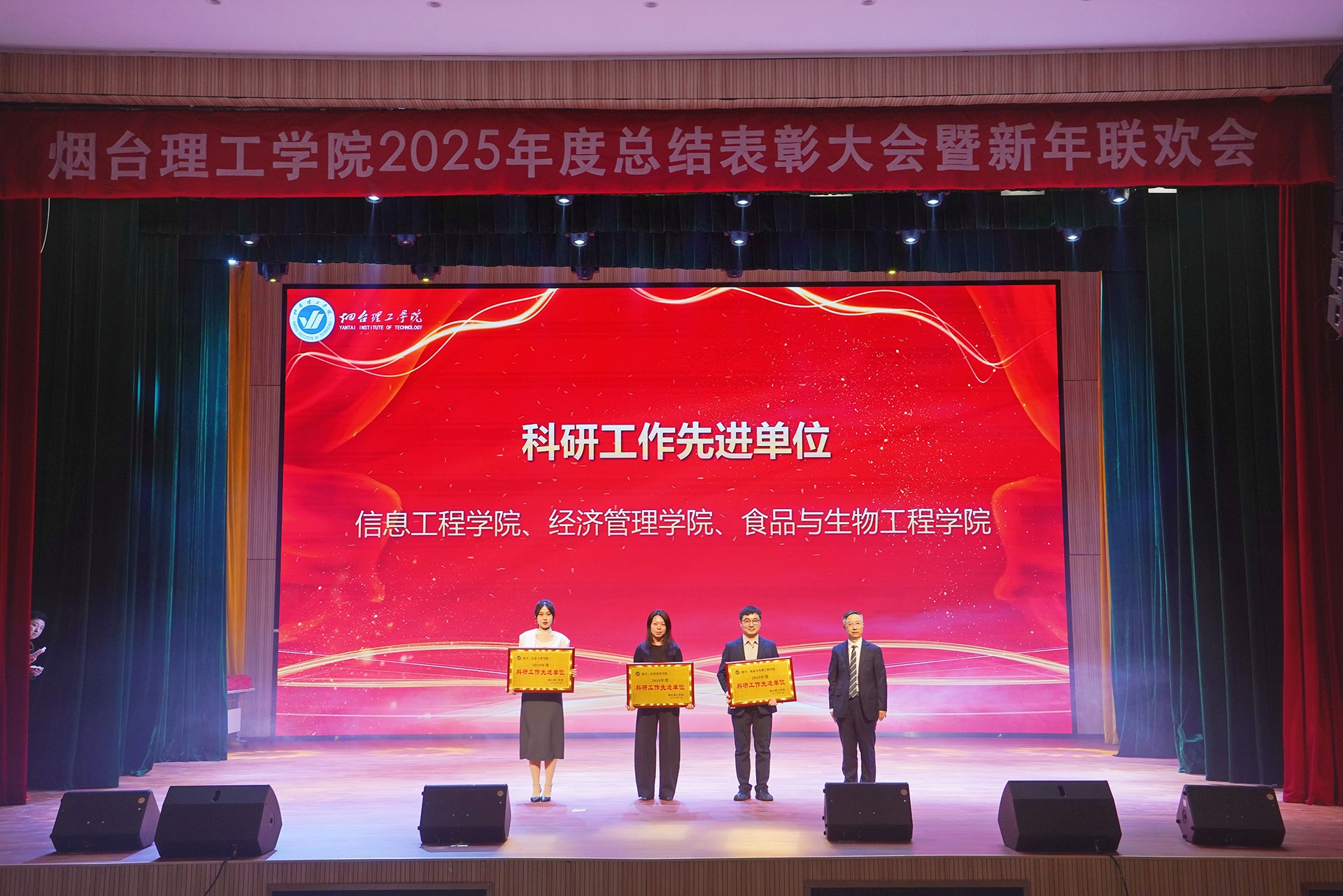 祥隆企业集团董事长、烟台理工学院董事长辛军及其他校领导会上对2025年度教育教学、科学研究、师资建设、招生就业、目标管理等方面表现突出的先进单位进行了表彰。