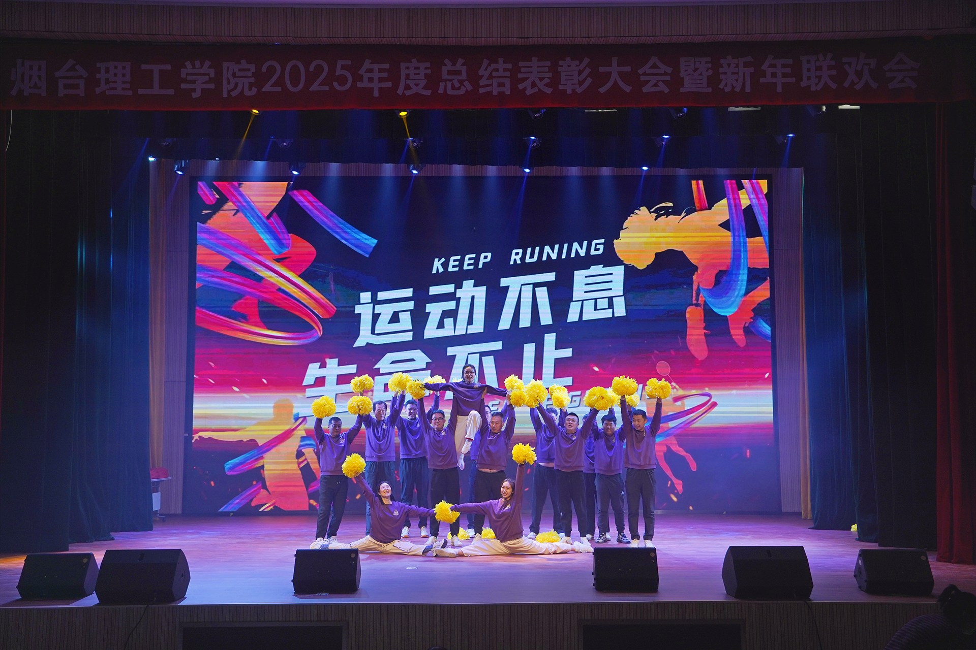 于光辉代表学校向奋战在教学、科研、管理及服务一线的全体教职工致以诚挚问候和衷心感谢。他指出,2025年学校各项事业取得新进展。教学科研领域亮点纷呈,省级教学成果奖、教学名师、青创团队、一流教材等多项重量级荣誉接连落地,高层次人才引育成效初显,师生在各类竞赛中实现国家级奖项突破,省市级科创平台建设稳步推进;办学条件持续优化,高新校区建设按下“快进键”。这些成绩的取得,凝聚着全体烟理工人的同心同德、实干担当与不懈奋斗。立足新起点,全体教职工要直面挑战、抢抓机遇,在识变、应变、求变中夯实高质量发展根基,携手共建有灵魂、有温度、有责任、有特色的新型应用型大学。