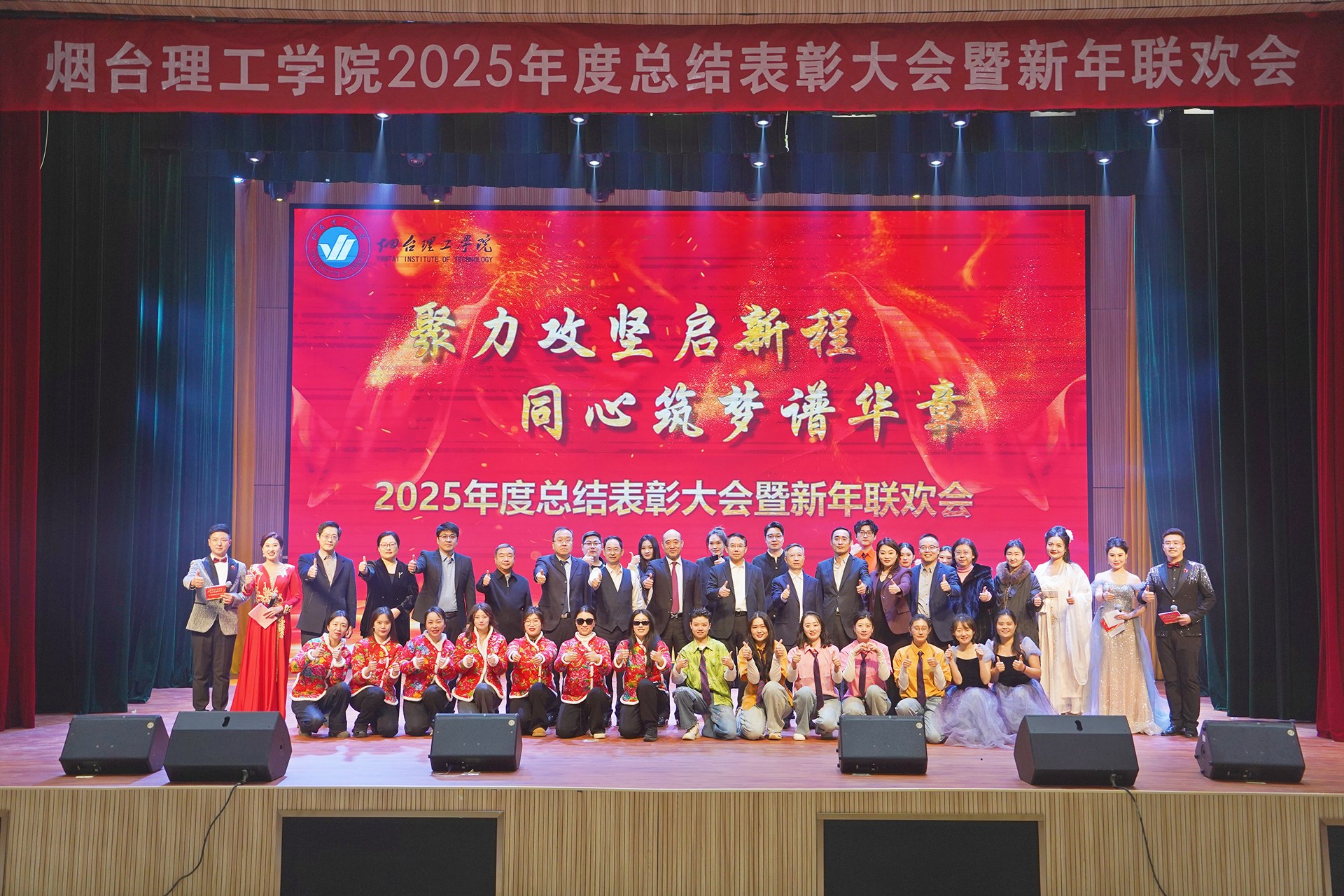 1月27日下午,烟台理工学院2025年度总结表彰大会暨新年联欢会在综合楼一楼多功能厅隆重举行。祥隆企业集团董事长、烟台理工学院董事长辛军,集团副总裁、学院董事会秘书长徐荣哲,烟台理工学院校长于光辉,党委书记姜华平及全体校领导与教职员工欢聚一堂,总结过往、表彰先进,共迎新春、共话发展。